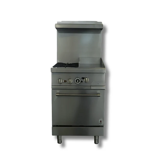 Gas Range 24″w/12″ Griddle top with 2 Open Burners HZ-R24-12MG