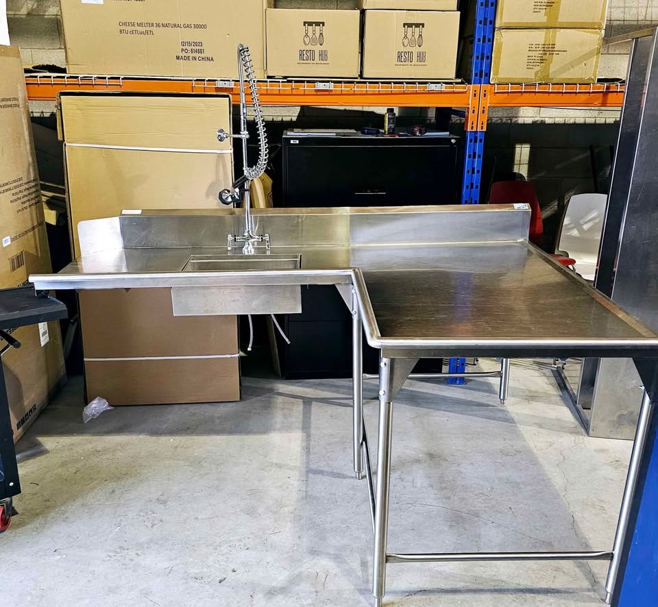 stainless steel dishwasher station with shower faucet