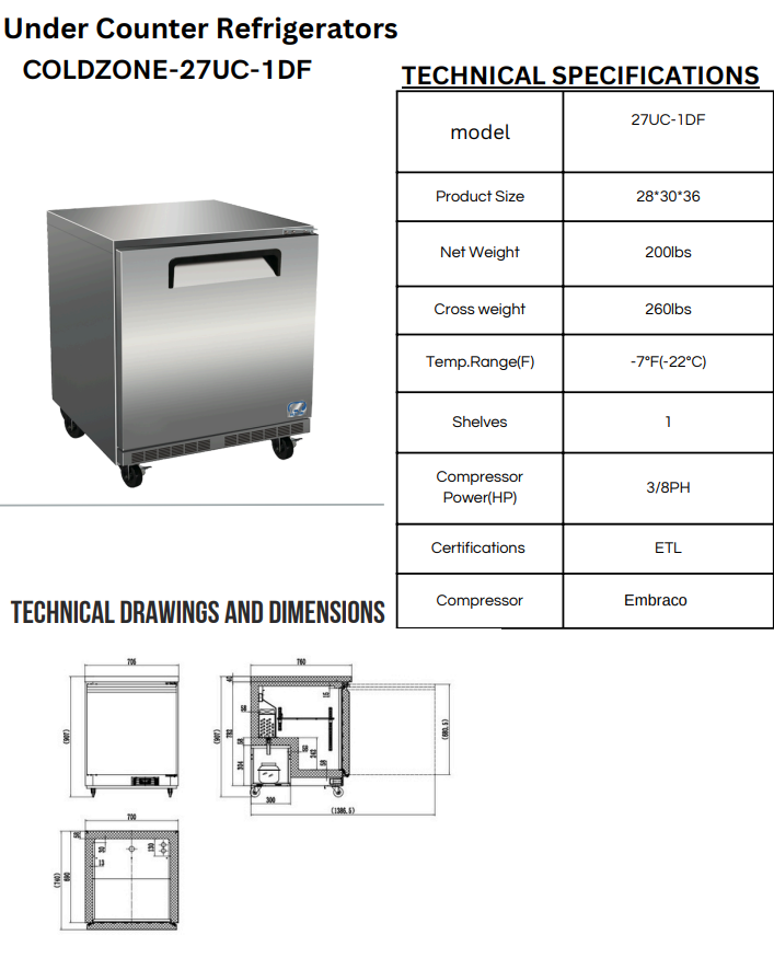 - Temperature range:-7°F(-22°C)